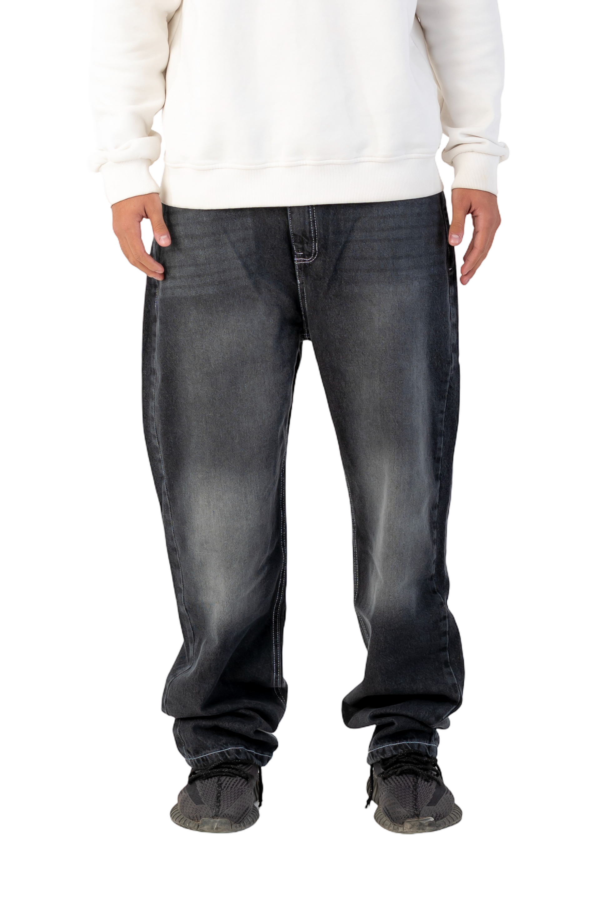 Make a bold statement with our Black Jeans, designed with premium knee detailing in light grey and white. These jeans fuse high-end craftsmanship with a modern street aesthetic, giving you a standout look that turns heads anywhere you go.